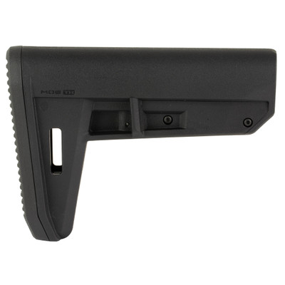 At only eight ounces, the MOE Trigger Release (TR) is one of Magpul's lightest stocks. Thanks to its ambidextrous, textured Trigger Release adjustment mechanism, it's also one of the easiest for making LOP adjustments, as well as installing or removing the stock. The Trigger Release combines with a newly developed takedown lever that also makes the MOE TR stock our easiest stock to install and remove on your firearm. That means no more leveraging a high-tension spring to mount and remove your stock; the innovative, one-handed toolless takedown lever allows quick and easy installation and removal. It includes a padlock icon to indicate whether the stock is locked or unlocked. Once the lever is positioned in the locked position, it can't be removed from the receiver extension, ensuring it won't slide off when making LOP adjustments. The takedown lever is also partially recessed to minimize snagging while still permitting easy access to select it when necessary.